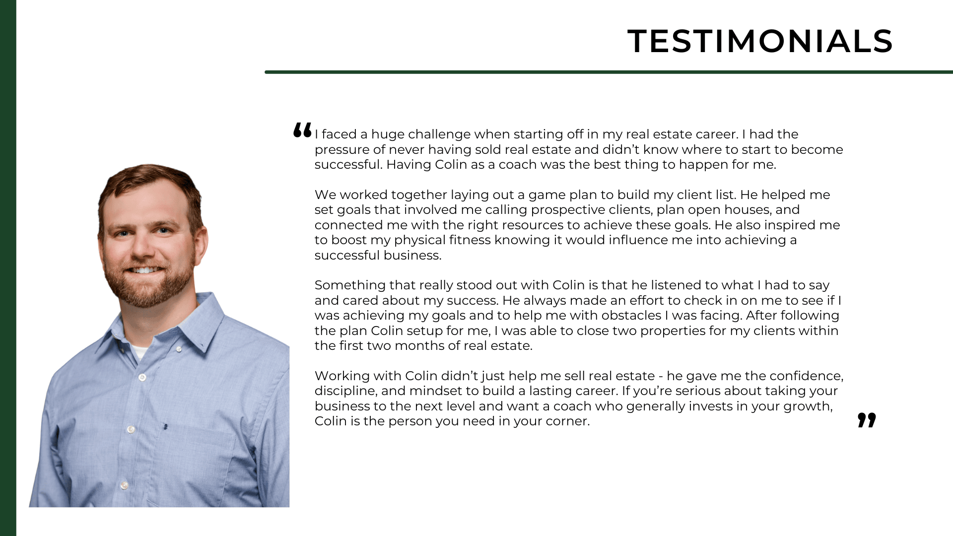 Building a real estate business will challenge you mentally, emotionally, physically, and beyond. The challange can build you up or break you down. The hardest part? No one gives you a road map. Most of us don't know how to start and then we don't know how to break through plateaus — it's my job to help you with the models, methods, and mindset needed to unlock new levels of performance in business and in life.